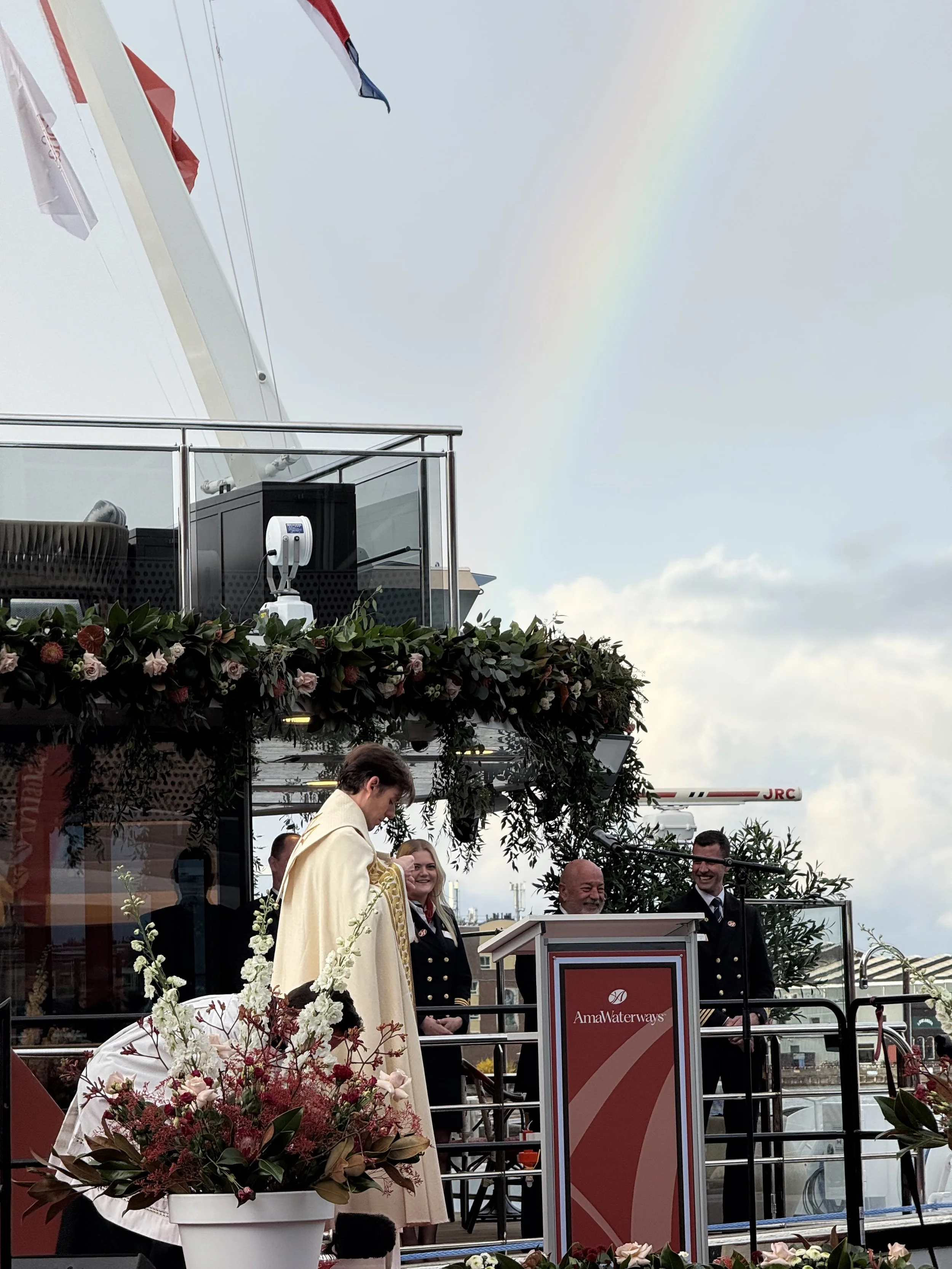A rainbow appeared during the blessing of the AmaSofia—a very good omen!