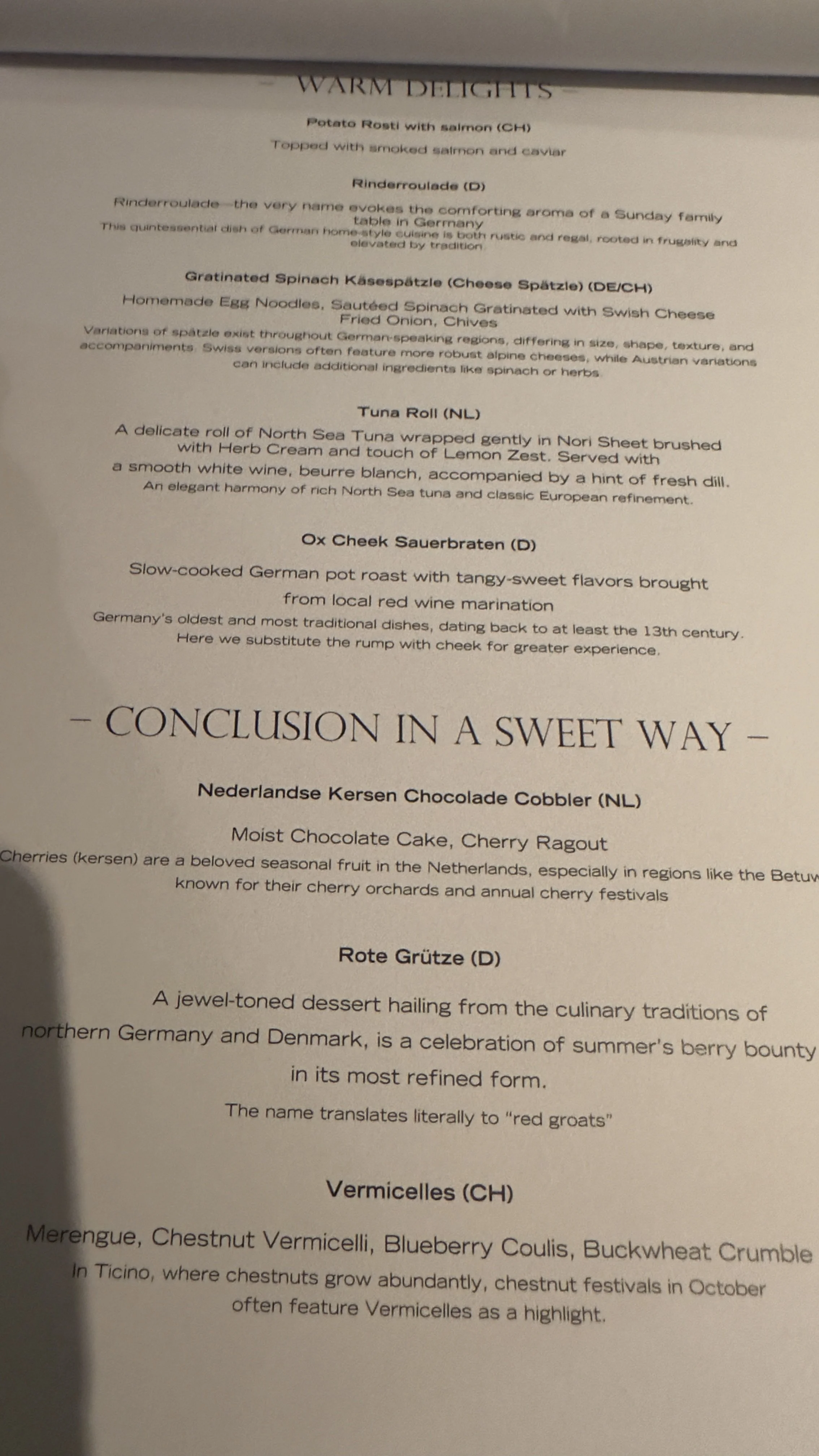 We had a great diner on the Debussy during the Expo. Since we had sailed on her in April of 2025, most of the crew remembered us and gave us big hugs. So, now to our dinner meal: