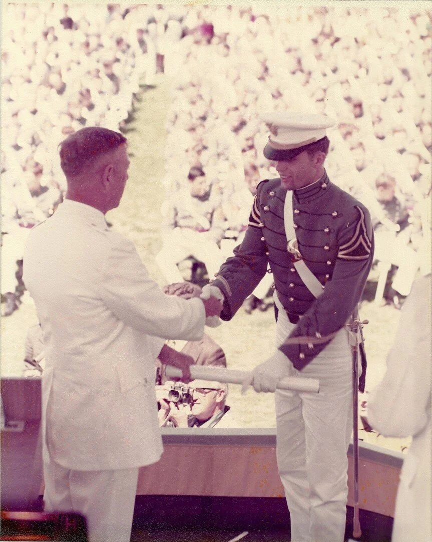 Hank graduating from West Point 9 June 1971—you can see the blurred images of my classmates in the background.