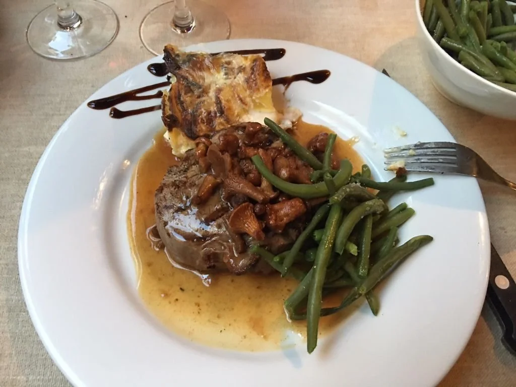 L’e Table de Bouchers served me this great meal—steak, green beens and scollop pototoes